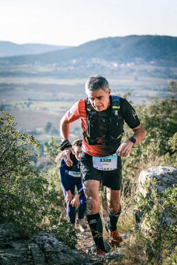 Nous attaquons la 2ème heure de course, les sensations sont toujours bonnes, j’essaie de remettre un peu de rythme sur des chemins que je connais mieux. Je reprends quelques concurrents. Sauf dans la montée qui longe le route de Saint-Côme, là, marche même si ça me coûte quelques positions.